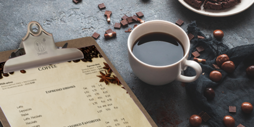 Clipboard A4 “MENU” med dit logo, modern marron/brun
