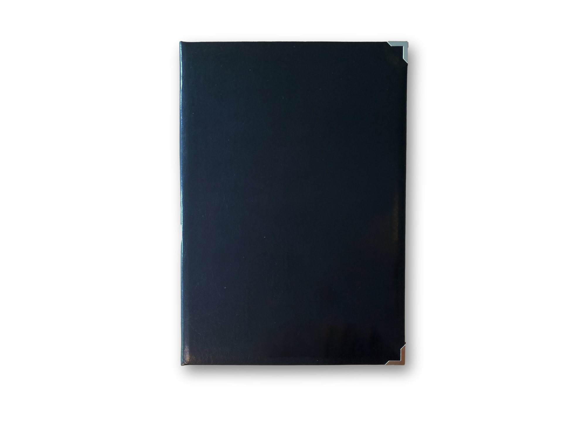 Der medfølger 16 selvklæbende hjørner til hver menuomslag – 8 sorte (16×16 mm) til tykkere, stift papir, og 8 klare (32×32 mm) til almindeligt papir. Hvilket giver dig fuld fleksibilitet til at kombinere formater på hver side. Uanset om du har brug for at indsætte A4 + A4, A5 + A4 eller en hvilken som helst størrelse, mindre end 210×297 mm, passer denne menuholder til dine behov. Fremstillet i ægte læder med sølvfravede hjørnebeskyttere, giver den et strejf af luksus til borddækningen, og et godt indtryk til dine gæster.