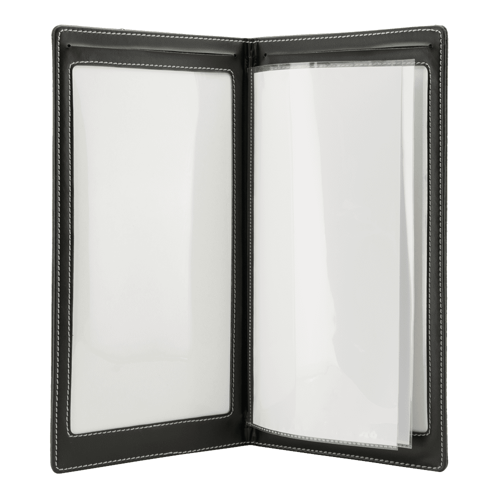 Elegant menuholder i A45 langt-format – til dig, der vil præsentere din menu med stil.