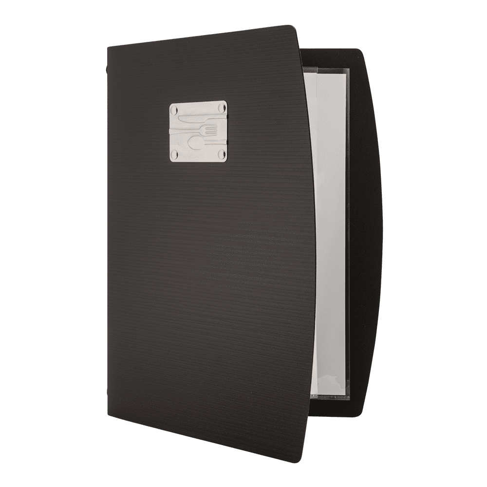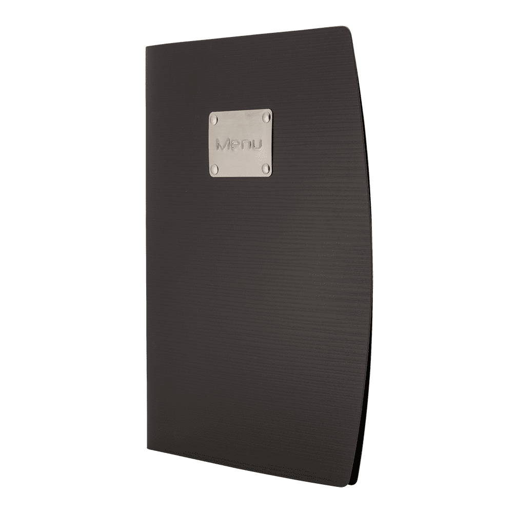 Securit® A4 RIO menuomslag har et friskt design og er holdbare. Et populært valg for barer, restauranter, klubber og bistroer. Menuomslaget er fleksibelt med en ridsefast og vandtæt overflade. Det er let at rengøre og har en børstet rustfri stålplade præget med ordet “Menu”. En dobbeltsidet lomme til 4 x A4-sider er inkluderet. Takket være den praktiske elastiske holder kan dette menuomslag let udvides til op til 40 x A4-sider med Securit® Menu lommer. Lommerne er fremstillet af miljøvenligt polypropylen af høj kvalitet. Brug dit Securit® RIO-menuomslag sammen med det øvrige Securit® RIO-sortiment. Fås i forskellige lyse farver og variationer.