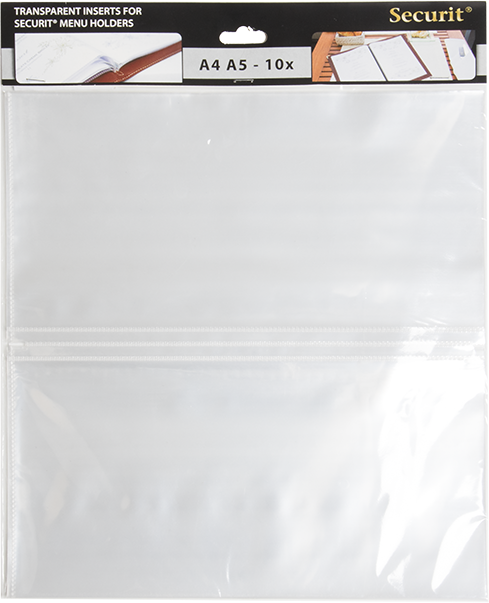 Tilføjet et par ekstra retter til din menu og har brug for mere plads? Med Securit® A45 Menu lommer kan du nemt udvide dine eksisterende menuomslag. Designet til brug sammen med Securit® Menuomslag, der med den praktiske elastiske holder nemt kan udvides. Securit® Menu lommer er fremstillet af miljøvenlig polypropylen af høj kvalitet. Indeholder 10 dobbeltsidede lommer, og hver lomme kan rumme 4 x A45-sider. Sæt let dine menusider ind i lommerne, og skift når det er nødvendigt. For at sætte flere lommer ind i dine Securit® Menuomslag skal du bare løfte elastikken og tilføje så mange, som du har brug for. Fås i forskellige størrelser.