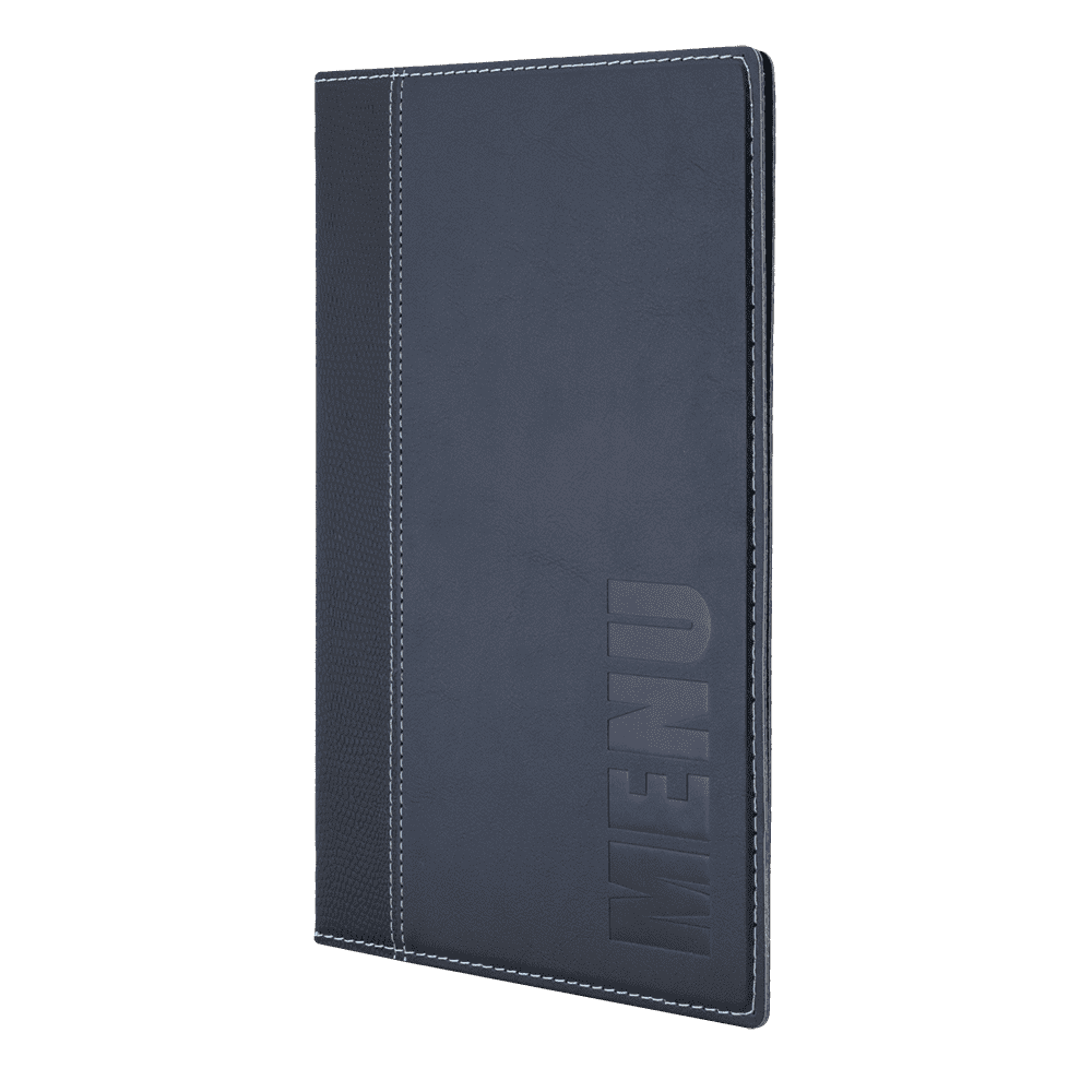 Securit® A5 Trendy Menuomslag har et stilfuldt og iøjenfaldende design. Menuomslaget har syede kanter og er præget med ordet “Menu” – passer perfekt til en stilfuld bar, café eller restaurant. En dobbeltsidet lomme til 4 x A5-sider er inkluderet. Takket være den praktiske elastiske holder kan dette menuomslag let udvides op til 40 x A5-sider med Securit® Menu lommer. Lommerne er fremstillet af miljøvenligt polypropylen af høj kvalitet. I samme stil findes Securit® Trendy Vinkort og Securit® Trendy regning holdere. Fås i forskellige farver og variationer.