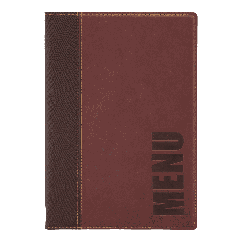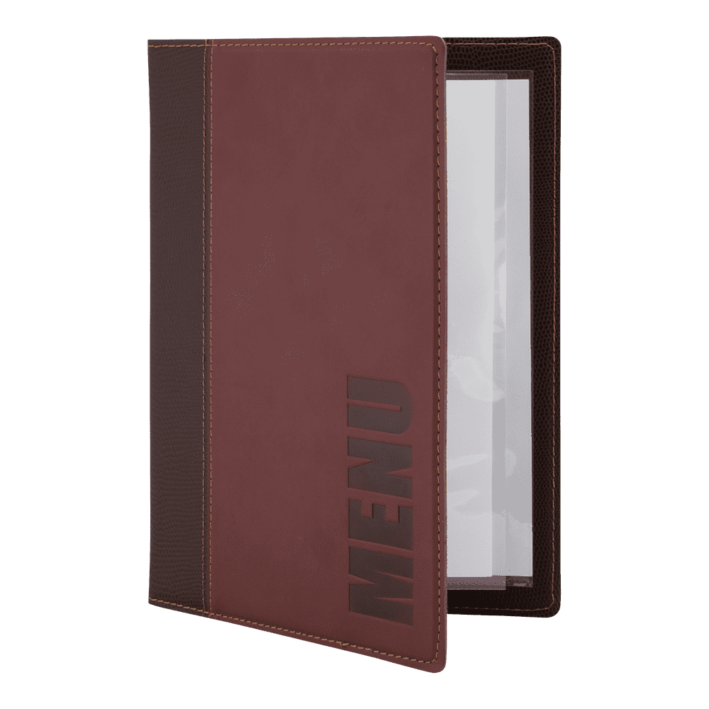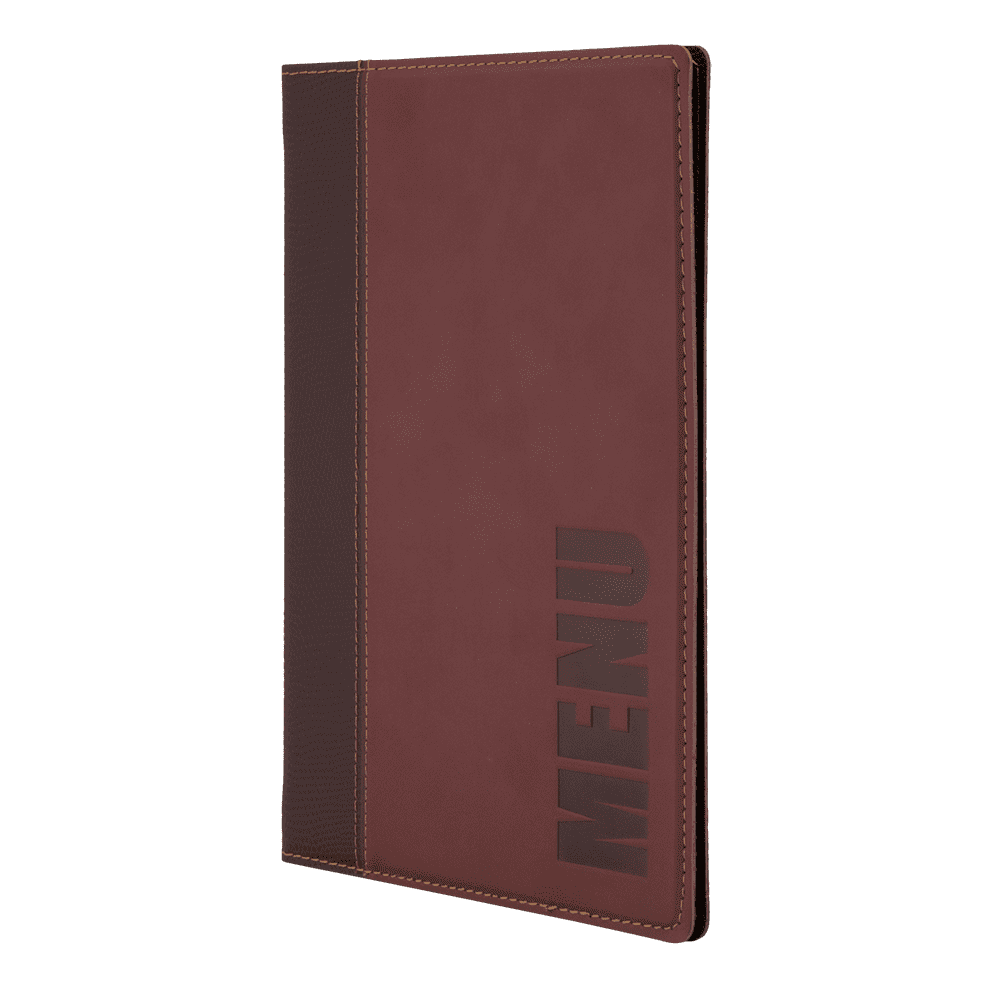 Securit® A5 Trendy Menuomslag har et stilfuldt og iøjenfaldende design. Menuomslaget har syede kanter og er præget med ordet “Menu” – passer perfekt til en stilfuld bar, café eller restaurant. En dobbeltsidet lomme til 4 x A5-sider er inkluderet. Takket være den praktiske elastiske holder kan dette menuomslag let udvides op til 40 x A5-sider med Securit® Menu lommer. Lommerne er fremstillet af miljøvenligt polypropylen af høj kvalitet. I samme stil findes Securit® Trendy Vinkort og Securit® Trendy regning holdere. Fås i forskellige farver og variationer.