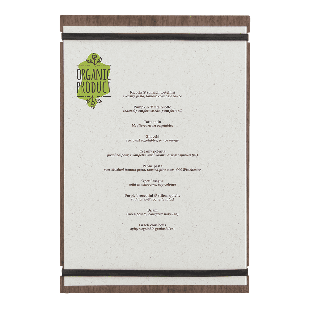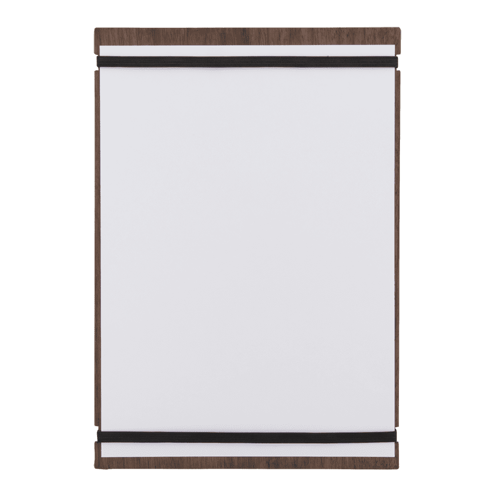 De førsteklasses naturlige materialer i Securit® A4 Walnut Tablet Menuholder er en tidløs klassiker. Denne håndlavede, dobbeltsidede menuholder lavet af lakeret valnøddetræ er et ideelt valg til moderne barer og restauranter, der foretrækker et luksuriøst naturligt udseende. To sorte, fleksible elastikker gør det let at udskifte menuarket, når det er nødvendigt. Perfekt i kombination med den matchende Securit® Walnut Bill Presenter.