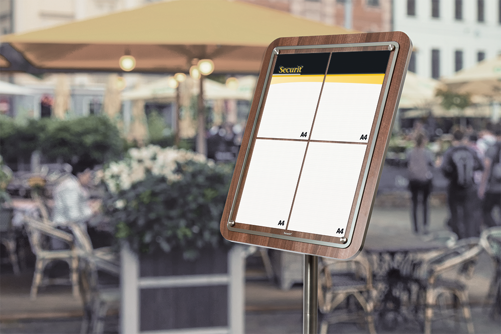 Securit® GLASS STAR 4xA4 menu-display i valnød